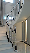 При монтаже на косые выступы, мы запилим стеклянные балясины, поручни под нужным вам углом, вам нужно будет сфотографировать место монтажа- дальше просто отвечайте на наши вопросы и замеряйте то, что мы попросим