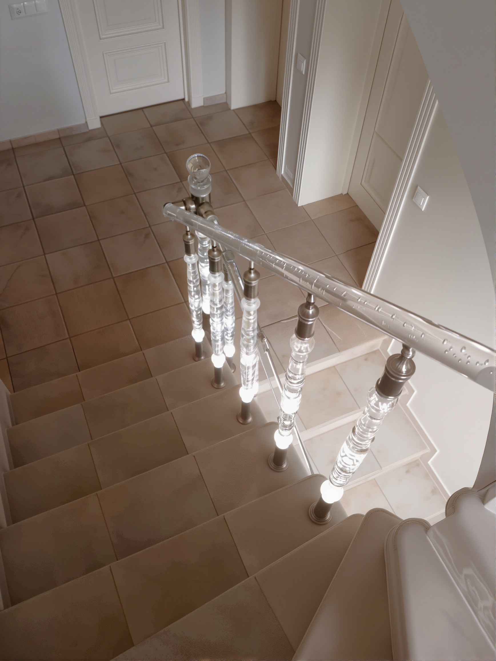 Проект 173. Закончили ранее год назад объект в СНТ Чириково-3, Москвы. Особенность объекта -это монтаж подсветки на балясины из Турции на 3 этажа. Из-за особенностей креплений самих балясин- это очень трудоёмкий процесс и сложный, но мастер Олег приехал из другого города и выполнил всё чётко. Через год (сейчас) клиент подтвердил, что всё норм и прислал видео подтверждение (публикуем сейчас).