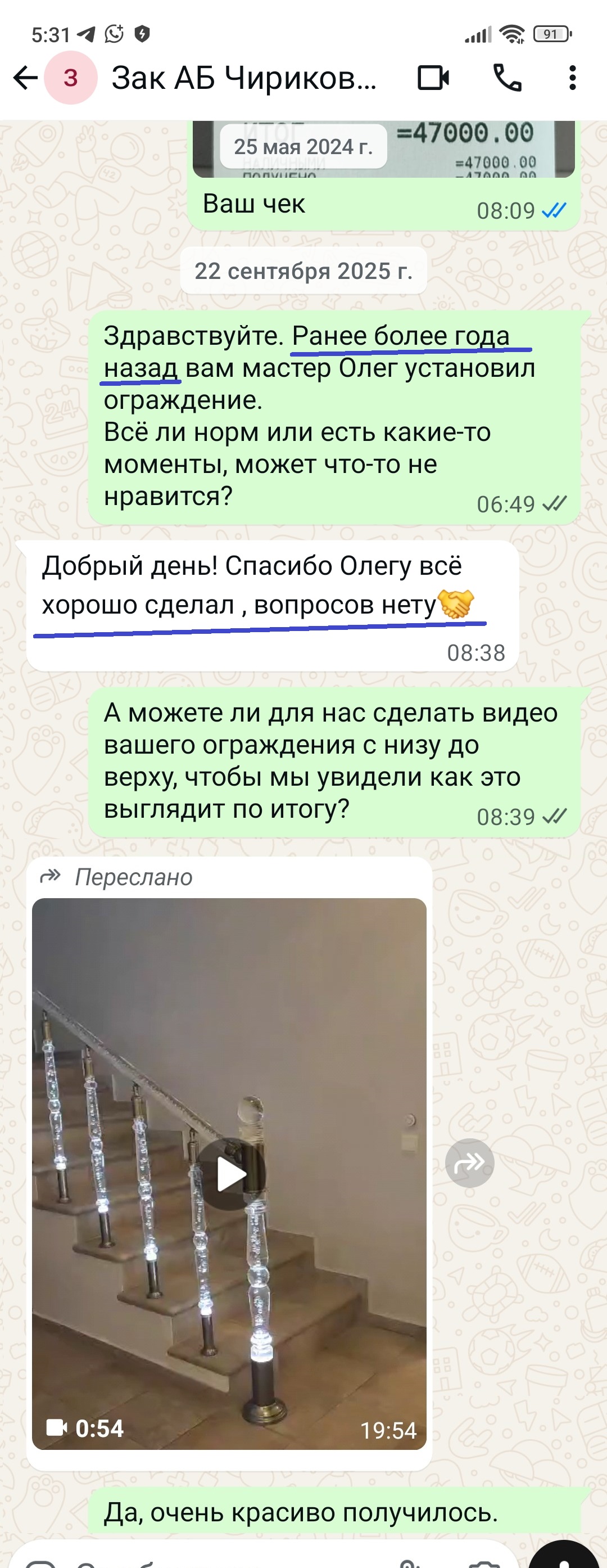 Общая сумма вложений в эксклюзивное ограждение вместе с установкой на 3 этажа для клиента составила: 322130₽