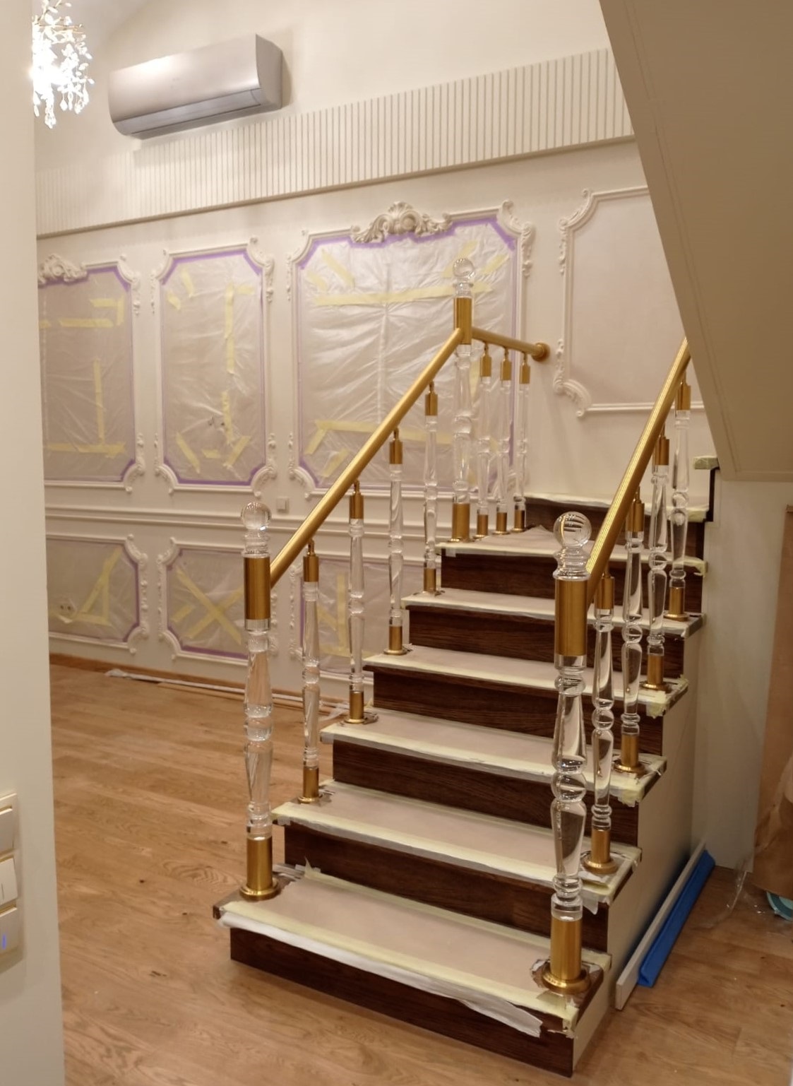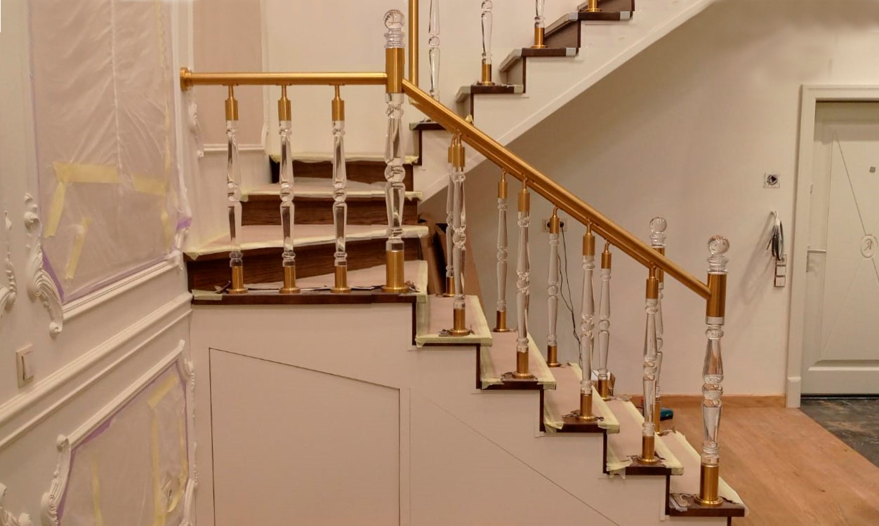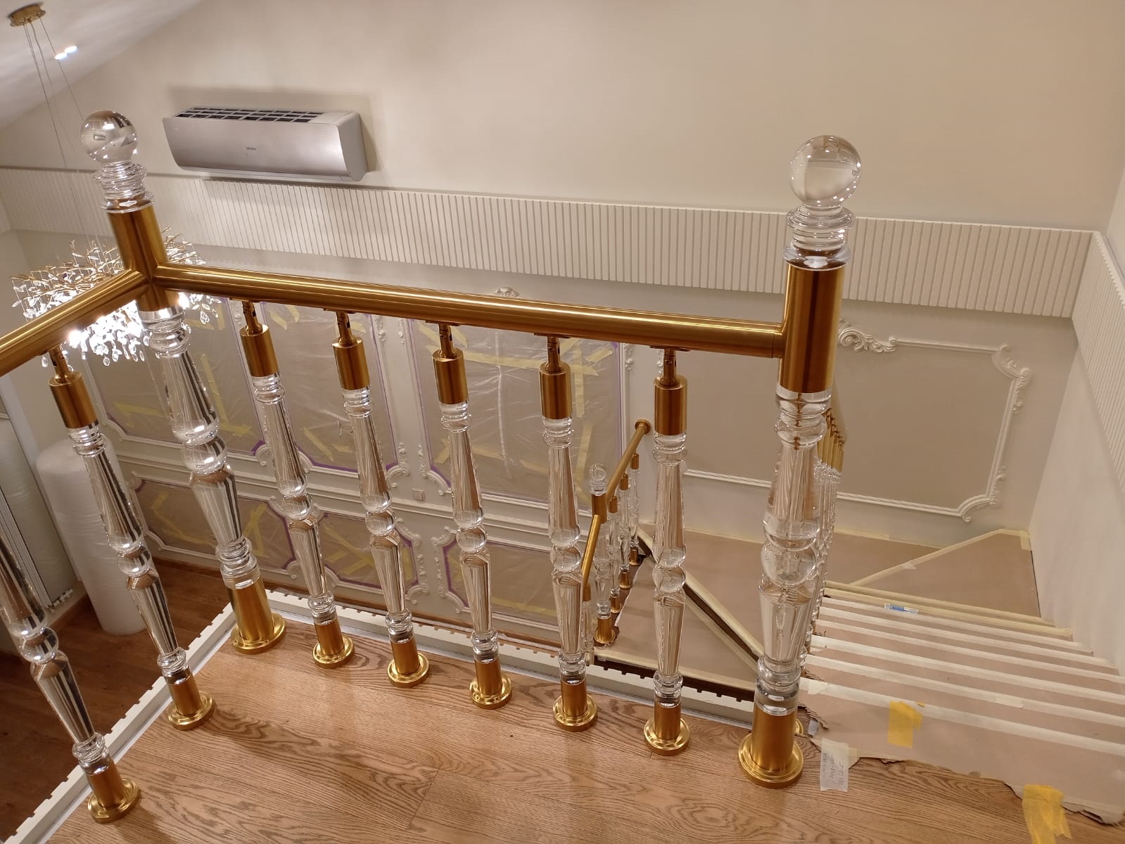 Проект 176. Закончили ранее объект в самом центре Санкт-Петербурга в 2-х уровневой квартире. Так как наш заказчик творческий человек, он выбрал наши изделия с креплениями в стиль люстр и кухонной мебели, чтобы всё сочеталось. А наш профессиональный мастер-партнёр всё установил. Кстати, это второй заказ на втором объекте у этого же клиента, кому мы ранее делали ограждение из акрила 5 лет назад и он остался доволен нашей работой, как и в этот раз.