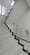 При монтаже  на косые выступы, мы запилим стеклянные балясины, поручни под нужным вам углом, вам нужно будет сфотографировать место монтажа- дальше просто отвечайте на наши вопросы и замеряйте то, что мы попросим