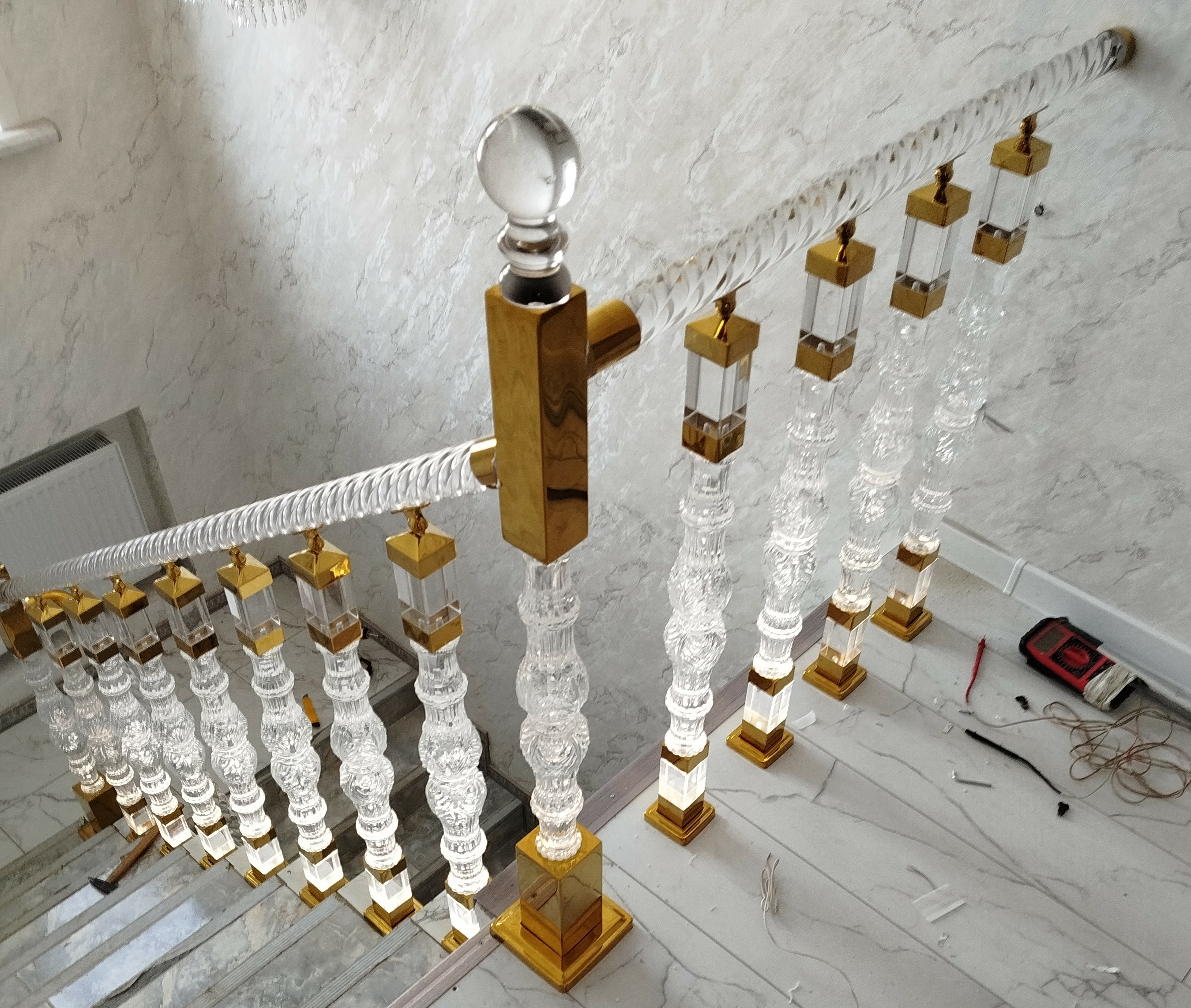 - балясина из акрила – А48 Ø80х850мм квадратная ножка и верх балясины без пузырьков креп. золото – 7700₽ х11шт =84700₽