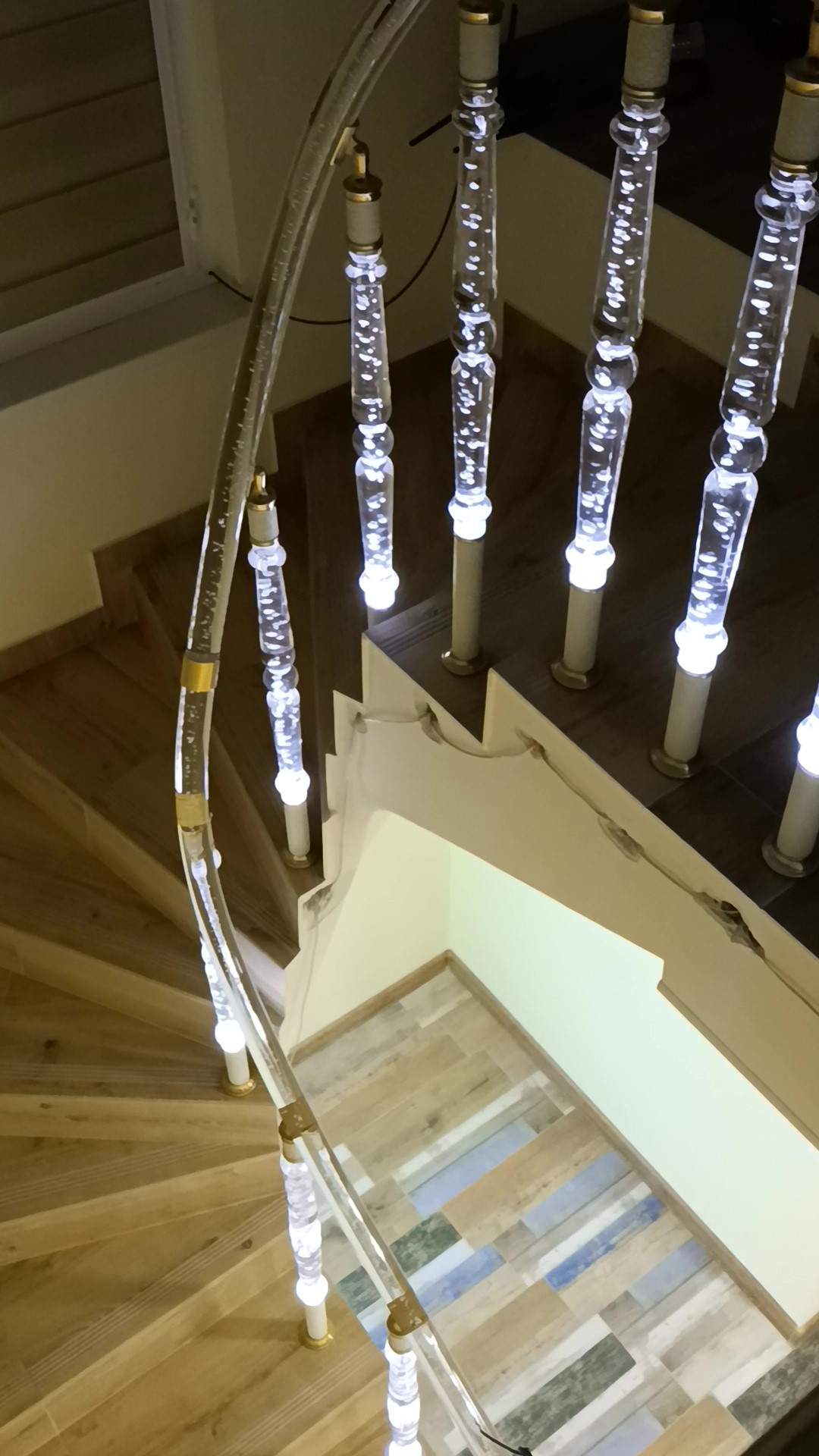 Поручни из акрила могут царапаться, затираться (спустя годы), поэтому при планеровке ограждения расчитывайте аккуратнее , где будет акрил, а где стеклянные поручни, так как они одинаковы