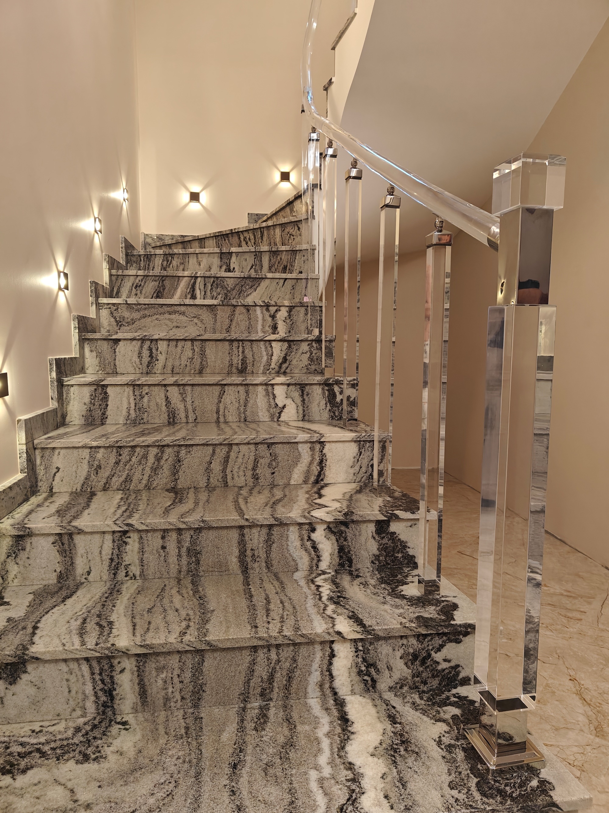 Поручни из акрила могут царапаться, затираться (спустя годы), поэтому при планеровке ограждения расчитывайте аккуратнее , где будет акрил, а где стеклянные поручни, так как они одинаковы