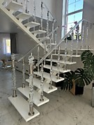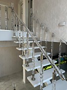 При монтаже на косые выступы, мы запилим стеклянные балясины, поручни под нужным вам углом, вам нужно будет сфотографировать место монтажа- дальше просто отвечайте на наши вопросы и замеряйте то, что мы попросим